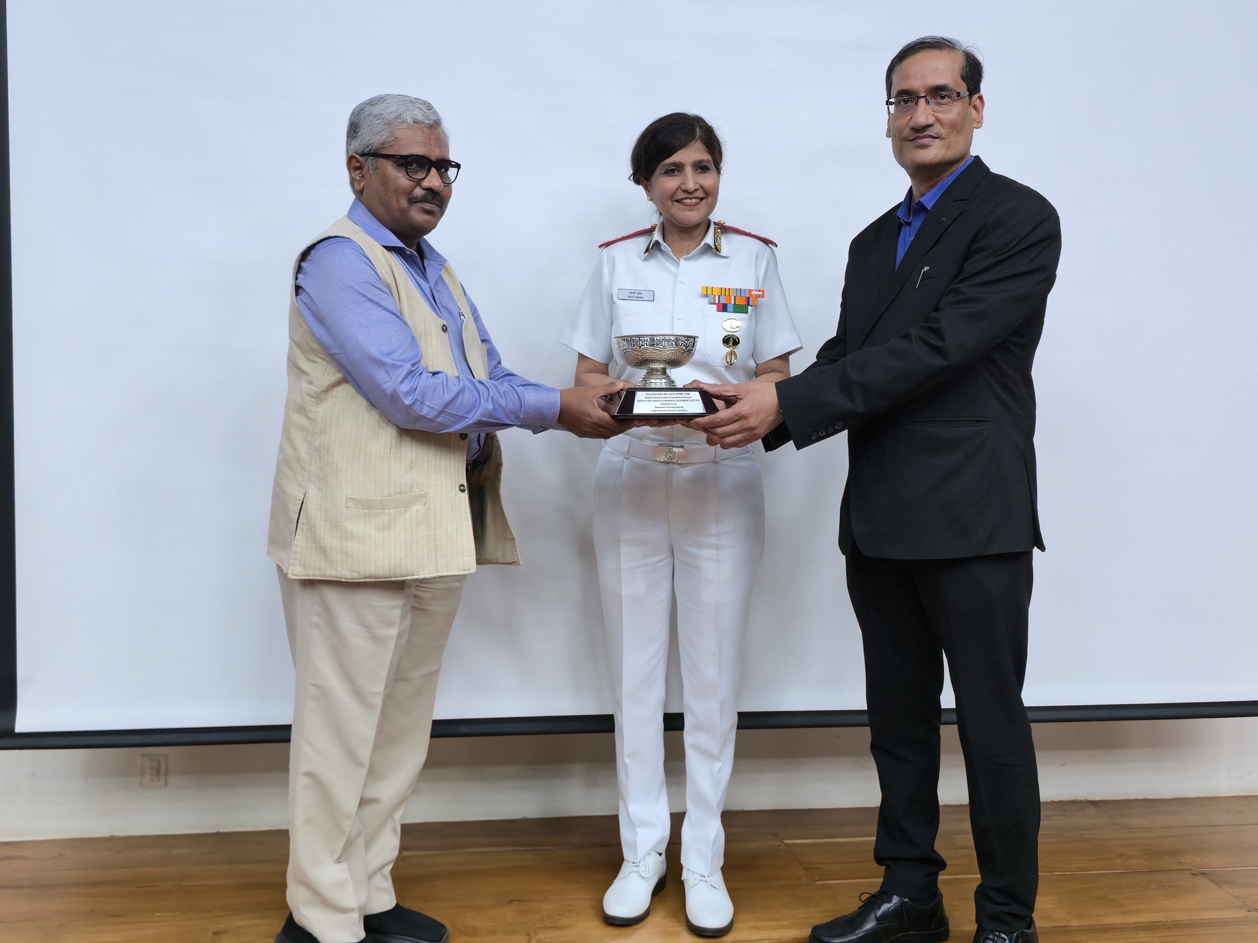 Abstract: Surgeon Vice Admiral Arti Sarin, DGAFMS, will deliver the Rinti Banerjee Memorial Endowment Lecture at IISc, Bangalore, marking a pivotal moment as IISc moves towards establishing its medical college. Drawing upon her distinguished journey through the Armed Forces Medical Services (AFMS), she will reflect on the AFMS’s mission-oriented medical care, combat readiness, specialized training at AFMC, research, and digitization. The lecture will explore AFMS’s operational challenges—from modular field hospitals to drone deliveries and NGS-enabled diagnostics—and underscore the critical role of women in uniform. The lecture will also highlight the synergy between IISc and AFMS in biomedical innovation, high-altitude medicine, AI-driven health interventions, and capacity building, aiming to envision a collaborative future where state-of-the-art medical education and defence healthcare coalesce for the nation’s progress.